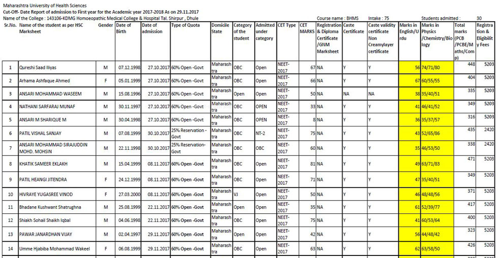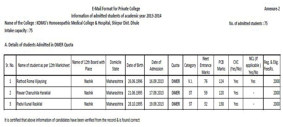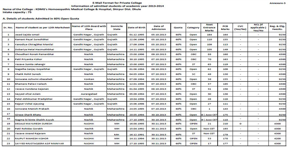 At the same time 2 students have not submitted Domicile proof namely Bhosle Shubhangi, Paraskar Vishnu .Kindly Send the documents thru Email on directorayurvedmaha@gmail.com and CC to this mail id.
