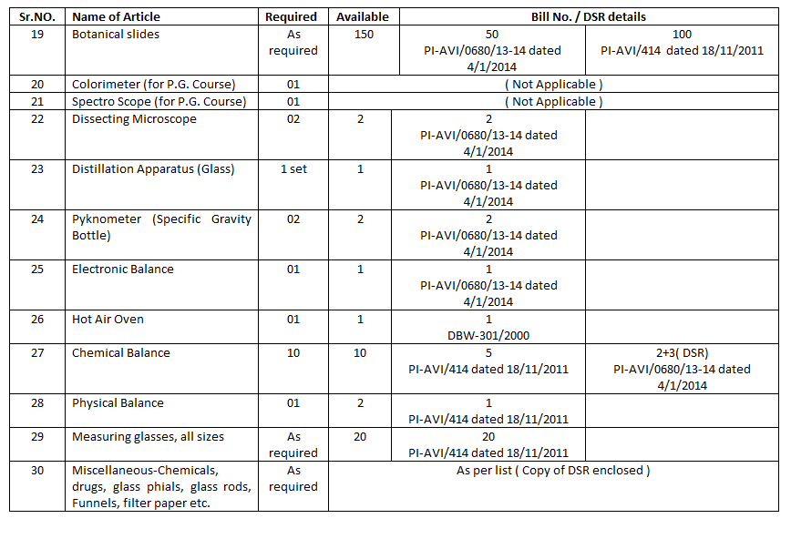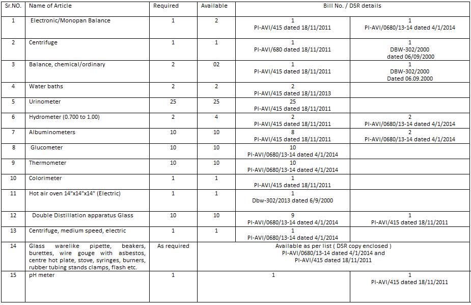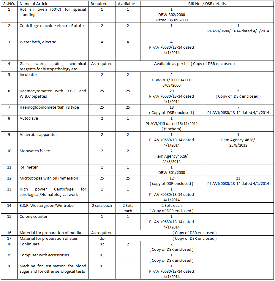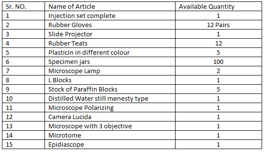 Additional Items :Incubator -1 , Microscope -8